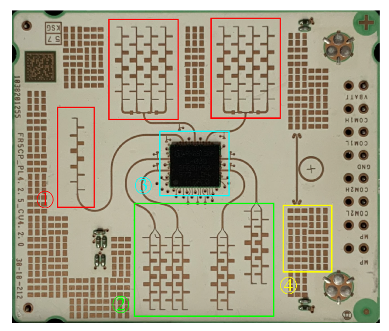 1) TX antennas, 2) Receive antennas, 3) Frontend IC 4 ) Reflection reduction structures [1] Automotive Radar - From first effort to future systems, Christian Waldschmidt et al.
